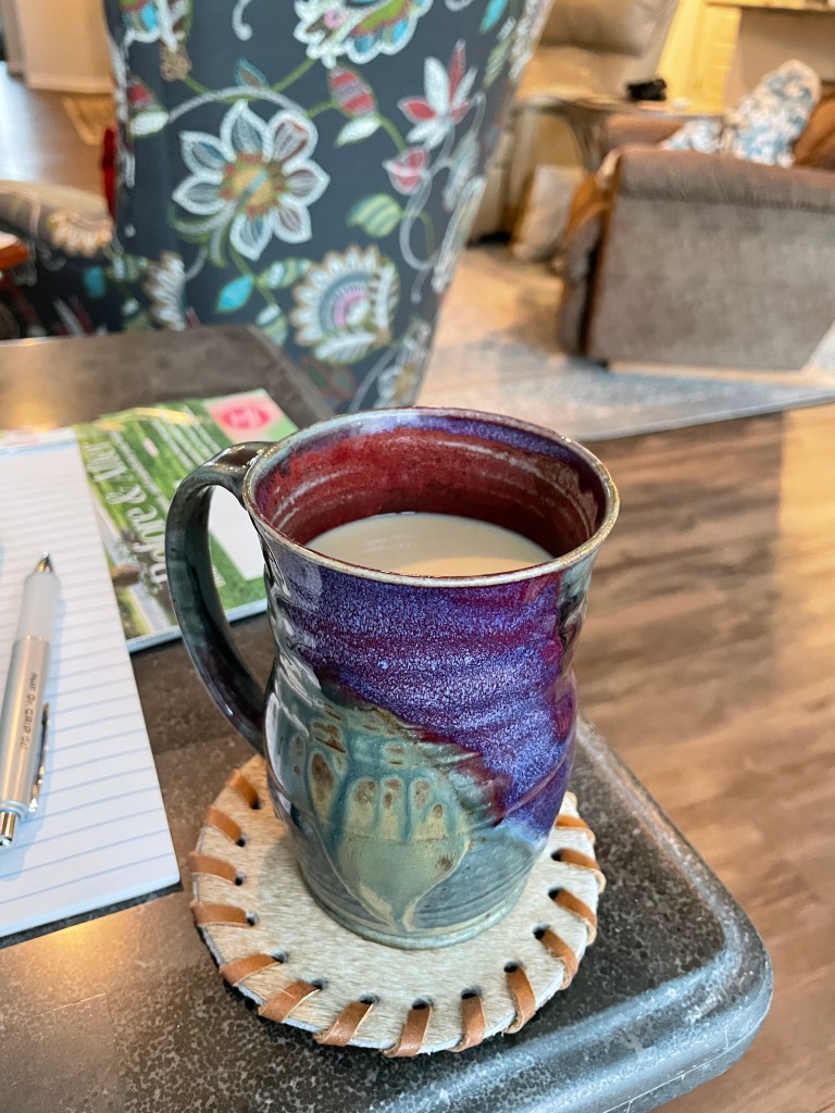 The coffee situation is much better here. I have my most favorite mug, I have my Highlander Grogg coffee, and a variety of others, plenty of half and half and my stevia sweetener. Getting coffee is something Mom has to help me with, because I’m not stable enough on the walker to get my own, and I haven’t figured out wheelchair with a coffee mug yet. I have figured out how to get water in my water bottle so that is some independence, and I with some gathering assistance I made my eggs for brekkie today and did a load of laundry because Mom is refusing to do my laundry lolz.