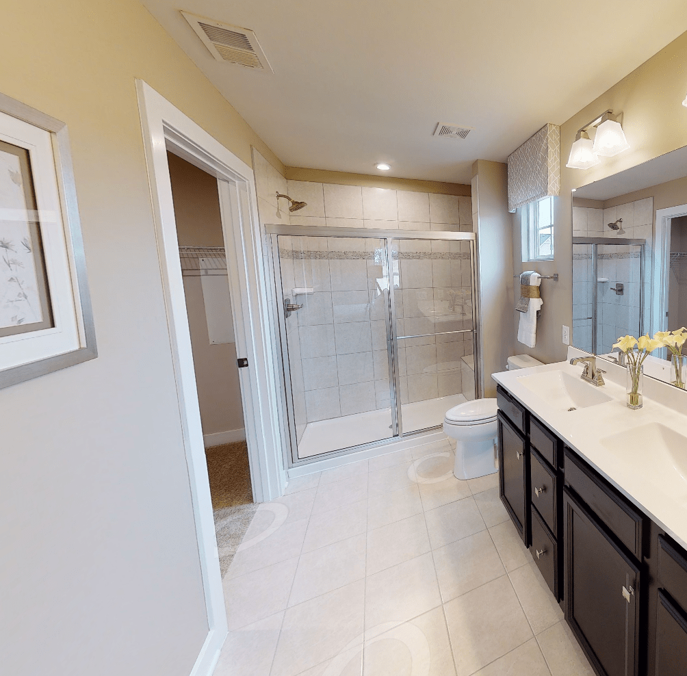 Now to my retreat. The room can easily accommodate a king bed which is in all the pictures and this picture from the virtual tour. All pictures are from the virtual tour from here on out, and it is a “Left Garage” house meaning the same as mine will be. The tour can be found here. It is easily the biggest bedroom I have ever had , and I am sure I will enjoy it. I’ve only ever had one nightstand, though sometime in the future I might buy a pair of nightstands. That is a long way down the road though. My purple flower based comforter should look pretty good on it though. My parents have already stated they are keeping the baby dresser though, so I might be forced into nightstands sooner than I like so I can have my pacemaker monitor within 10 feet of my sleeping space.