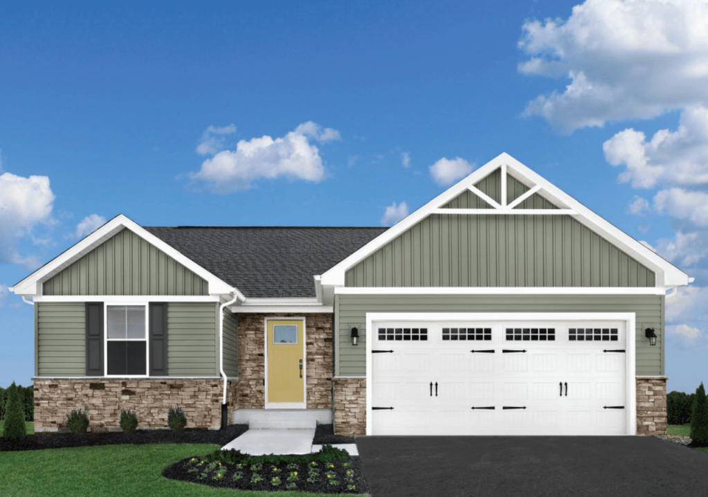 The new house, which has an estimated closing/move in date of the middle of November 2022 will be all one level, 3BR 2BA with future expansion to a 4BR 3BA if/when I decide to finish off the basement in a few years. The picture at right is an artist rendering of what the outside of my house will look like, but I have chosen a different color scheme where the front door is aptly named “Quixotic Plum” The rest is similar, my siding will be a “griege” which is a green/grey color, and black like my soul shutters. There is a stone wrap, which is a Middletown thing, all houses need to have some stone or brick on them per code. My garage will be on the left, with the floorplan looking like the one below.
