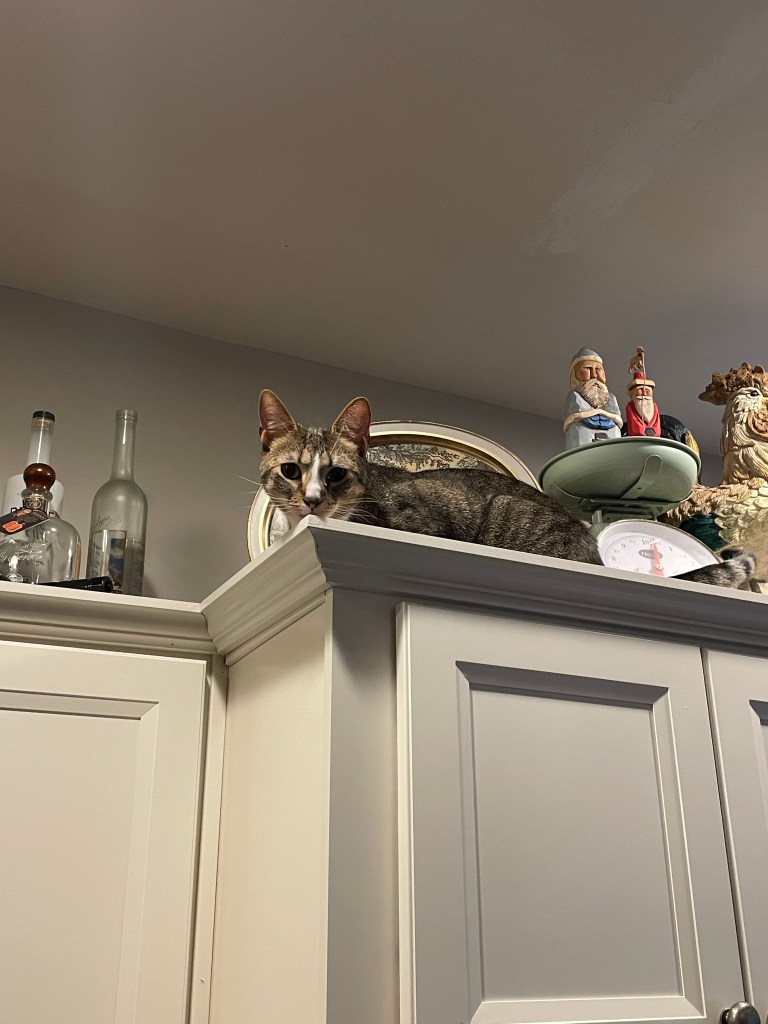 I love my Father, I really do. He is the sweetest, most caring and hard worker I know. However, he really does not like cats. My Mom is better about the cats, she doesn’t like them getting up on things. Now admittedly, I could have done a better job of training them to stay off certain surfaces like counters, tables and other high places. The problem is if you yell at the cats, it can often make things worse, and that is when you end up with broken things. My Mom and I try to tell my Dad to let it go when they get up on certain surfaces, but he has a really hard time with that. Throw in the fact that his Dixie is becoming fast friends with Marty and Lorraine, and is in my room during the evenings when he is home for slumber parties, and well, tonight it boiled over a little bit. I’m doing my best to calmly redirect them, but I also don’t want to give them treats to get down, because well, cats are too damn smart, especially my two. Lorraine comes when she is called, so that works about 95% of the time, but Marty is a stubborn ass. I can only hope that as we are here longer they will lose interest in getting up on these high surfaces. I also now know what I have to look forward to as my new place will not have cabinets to the ceiling.
