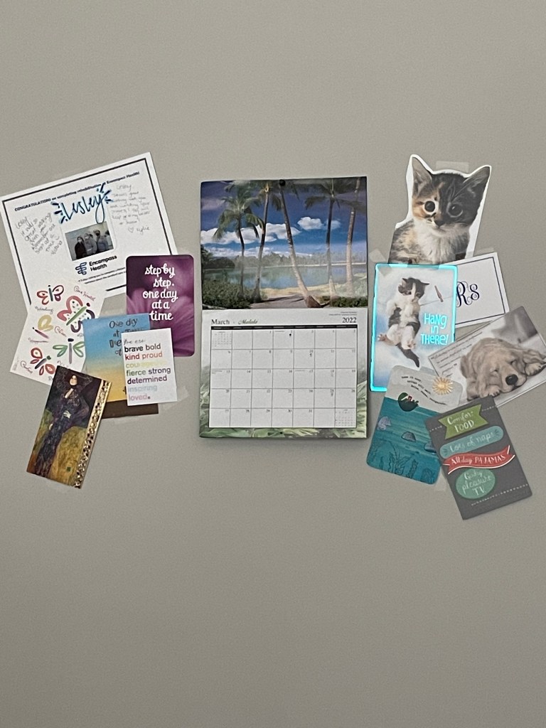 Today I finally had the energy and the time to take care of some of the final things that came from my condo. I also needed to figure out a better system for my paperwork (which is MASSIVE) and generally police my clutter. I also have received a lot of inspirational cards, and various things and I wanted to add a touch of personality to my room so I made myself a positivity wall. It’s full on teenager, but I am living at home with my parents the next 8-9 months. I might be in my new place by the holidays. I have a calendar (I love calendars at a glance) with various Hawaiian scenes, and lots of awesome flair and positive messages from my circle and things I need to remember. More cards are welcome so pm me if you want to send something.