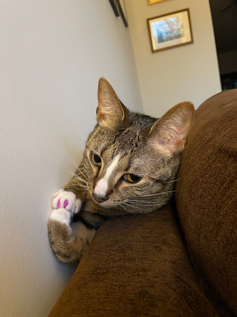 The cats continue to settle in well, with the latest game between them and Dixie is getting out of her reach and she is barking at them. That is kind of annoying, but in general they are all doing well with each other. Yesterday while Dixie was at her Aunt Melanie and Uncle Mike’s (our neighbors) the cats spent their Dixie-free time by napping on their tree by the big picture window. My new place won’t have one of those, so they are truly going to be spoiled the next 8-9 months. They enjoy all sorts of zoomies with Dixie and when it happens, slumber party time on my bed when I want to watch something different from my parents.